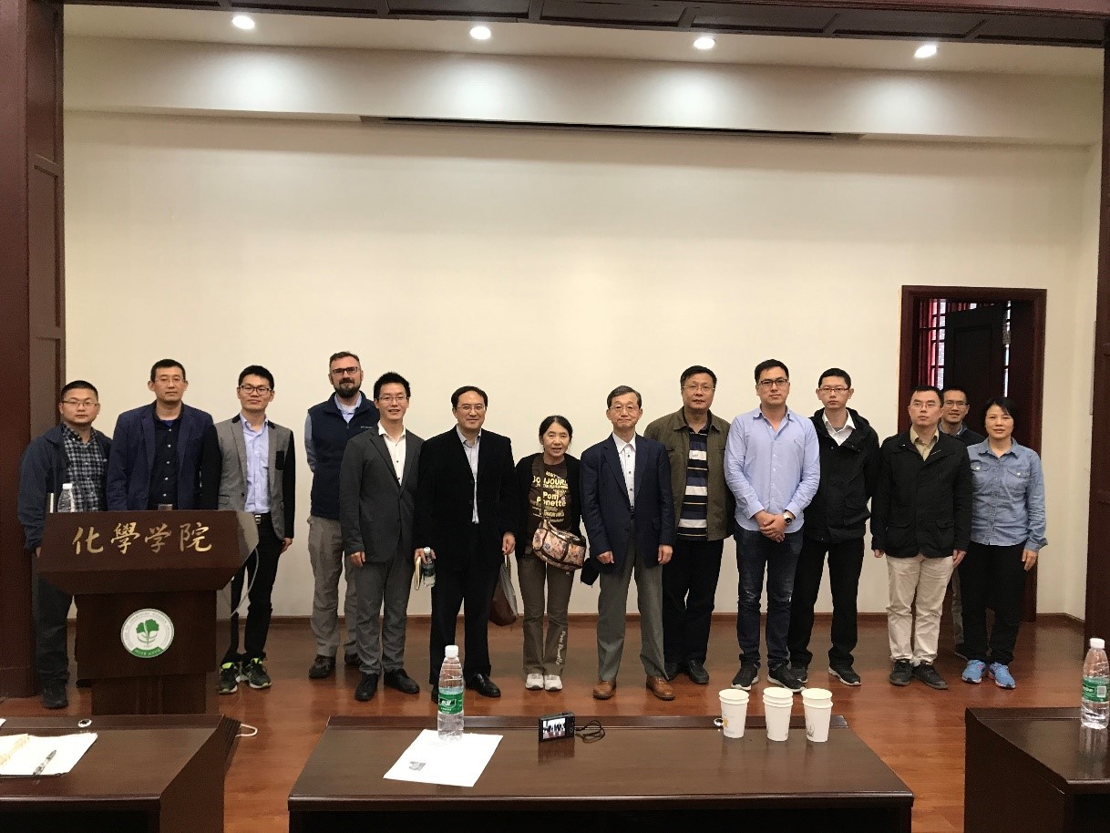 在此次报告中, Chatani 教授介绍了基于独特设计的过渡金属配合物(钌、铑、镍等)催化的 C-H 、 C-C 、C-O 和 C-F 键等传统惰性化学键的活化官能团化反应,并对部分反应机理进行了详细的阐述。Chatani教授讲解清晰,讲授内容丰富,详尽地向我们展示了过渡金属催化惰性化学键活化的魅力。在随后的自由提问环节,在座师生与 Chatani 教授就反应机理等问题进行了深入地讨论交流,大家获益匪浅。报告在全场师生热烈的掌声中落下了帷幕,结束后部分老师与 Chatani 教授进行了合影留念。