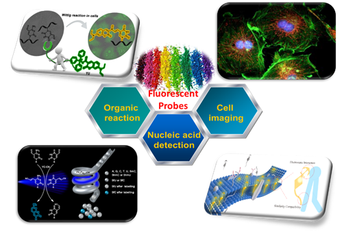 The works in my group mainly focus on developing different reaction-based probes or nanomaterial probes and their application in cell imaging. We have developed a series of subcellular-organelle-targeted probes for imaging and detection of reactive oxygen species (ROS), reactive nitrogen species (RNS) and reactive sulfur species (RSS) in living cells. Meanwhile, we have designed purine-based AIEgens which exhibit lipid droplets specific property in live cellular imaging; based on this skeleton, a wash-free imaging and ultrafast staining process for plasma membrane was developed with good biocompatibility. Currently, we are developing near-infrared (NIR) fluorescent dyes with large stokes shift, including phosphorus-substituted rhodamine and sulfoxide-substituted rhodamine, and investing their application in autophagy and fluorescence-guided surgery. We also focus on selective distinguish and detection of modified bases in DNA methylation. By exploring reaction-based labelling/fluorescent reagents, we have realized selective detection of 5fC and 5fU, respectively. We are developing a photodissociation technique for selective enrichment of modified bases and single base resolution sequencing.