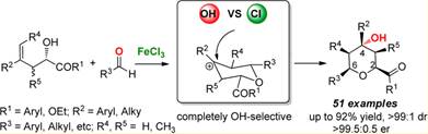13、Ke Zheng, Xiaohua Liu, Song Qin, Mingsheng Xie, Lili Lin, Changwei Hu, and Xiaoming Feng* “Completely OH-Selective FeCl3 Catalyzed Prins Cyclization: Highly Stereoselective Synthesis of 4-OH-Tetrahydropyrans” J. Am. Chem. Soc. 2012, 134, 17564−17573.