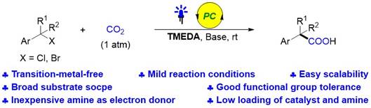 80. Q. Fu, Z.-Y. Bo, J.-H. Ye, T. Ju, H. Huang, L.-L. Liao, D.-G. Yu*, Transition metal-free phosphonocarboxylation of alkenes with carbon dioxide via visible-light photoredox catalysis. Nat. Commun. 2019, 10, 3592.