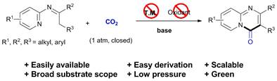 75. Z. Zhang,*‡ X.-Y. Zhou,‡ J.-G. Wu, L. Song, D.-G. Yu*, Transition-Metal-Free Lactamization of C(sp3)—H Bonds with CO2: Facile Generation of Pyrido[1,2-a]pyrimidin-4-ones. Green Chem. 2020, 22, 28. (‡ Equal contribution)