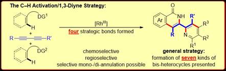 115. D.-G. Yu, F. de Azambuja, T. Gensch, C. G. Daniliuc, F. Glorius*, The C–H Activation/1,3-Diyne Strategy: Highly Selective Direct Synthesis of Diverse Bisheterocycles by RhIII-Catalysis. Angew. Chem. Int. Ed. 2014, 53, 9650. (Highlighted by Synfacts 2014, 10, 1023)