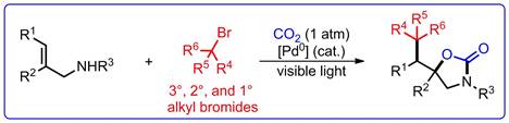 93. L. Sun, J.-H. Ye, W.-J. Zhou*, X. Zeng, D.-G. Yu*, Oxy-Alkylation of Allylamines with Unactivated Alkyl Bromides and CO2 via Visible-Light-Driven Palladium Catalysis. Org. Lett. 2018, 20, 3049. (Top 8 most read papers in May, 2018. Highlighted by CBG.)