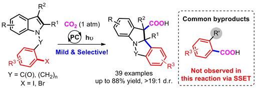 71. W.-J. Zhou,† Z.-H. Wang,† L.-L. Liao, Y.-X. Jiang, K.-G. Cao, T. Ju, Y. Li, G.-M. Cao, D.-G. Yu*, Reductive Dearomative Arylcarboxylation of Indoles with CO2 via Visible-Light Photoredox Catalysis. Nat. Commun. 2020, 11, 3263. († Equal contribution)