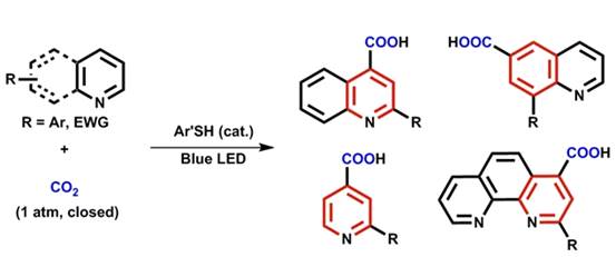 6. Y.-X. Jiang, L.-L. Liao, J.-H. Ye*, D.-G. Yu*, Visible-Light-Driven Thiolate-Catalyzed Carboxylation of C(sp2)-H Bonds in Azines with CO2. Synlett 2025, (Invited Synpact paper) DOI: 10.1055/a-2523-4762.