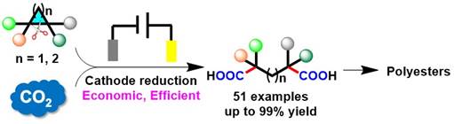 48. L.-L. Liao, Z.-H. Wang, K.-G. Cao, G.-Q. Sun, W. Zhang, C.-K. Ran, Y. Li, L. Chen, G.-M. Cao, D.-G. Yu*, Electrochemical Ring-Opening Dicarboxylation of Strained Carbon-Carbon Single Bonds with CO2: Facile Synthesis of Diacids and Derivatization into Polyesters. J. Am. Chem. Soc. 2022, 144, 2062.