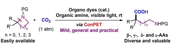 33. L. Chen, Q. Qu, C.-K. Ran, W. Wang, W. Zhang, Y. He, L.-L. Liao, J.-H. Ye*, D.-G. Yu*, Photocatalytic Carboxylation of C−N Bonds in Cyclic Amines with CO2 by Consecutive Visible-Light-Induced Electron Transfer. Angew. Chem. Int. Ed. 2023, 62, 202217918. (Highlighted by Synfacts 2023, 19, 0527)