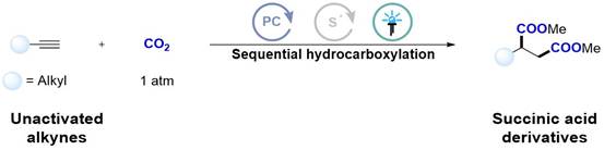 1. W. Wang,† S.-S. Yan,† Y. Liu, J.-S. Zhu, J.-W. Yang, J.-C. Xu, Y.-Y. Tao, J.-C. Li, L. Song, J.-H. Ye,* D.-G. Yu*, Photocatalytic 1,2-Dicarboxylation of Unactivated Alkynes with CO2. J. Am. Chem. Soc. 2025. († Equal contribution.)