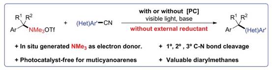 78. M. Miao, L.-L. Liao, G.-M. Cao, W.-J. Zhou,* D.-G. Yu*, Visible-light-mediated external-reductant-free reductive cross coupling of benzylammonium salts with (hetero)aryl nitriles. Sci. China Chem. 2019, 62, 1519. (Invited Contribution to SPECIAL ISSUE: Organic Free Radical Chemistry)