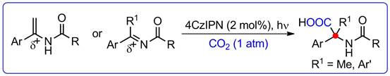 85. T. Ju, Q. Fu, J.-H. Ye, Z. Zhang, L.-L. Liao, S.-S. Yan, X.-Y. Tian, S.-P. Luo, J. Li, D.-G. Yu*, Selective and Catalytic Hydrocarboxylation of Enamides and Imines with CO2 to Generate α,α-Disubstituted α-Amino Acids. Angew. Chem. Int. Ed. 2018, 57, 13897.