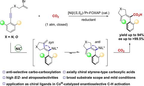 62. X.-W. Chen, J.-P. Yue, K. Wang, Y.-Y. Gui, Y.-N. Niu, J. Liu, C.-K. Ran, W. Kong,* W.-J. Zhou, D.-G. Yu*, Nickel-Catalyzed Asymmetric Reductive Carbo-Carboxylation of Alkenes with CO2. Angew. Chem. Int. Ed. 2021, 60, 14068 (Highlighted by WielyChem, X-Mol, CBG).