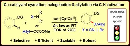 114. D.-G. Yu, T. Gensch, F. de Azambuja, S. Vásquez-Céspedes, F. Glorius*, Co(III)-Catalyzed C–H Activation/Formal SN-type Reactions: Selective and Efficient Cyanation, Halogenation, and Allylation. J. Am. Chem. Soc. 2014, 136, 17722. (Top 3 most read JACS papers in December, 2014).