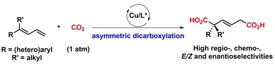 15. Y.-Y. Gui,*,† X.-W. Chen,† X.-Y. Mo, J.-P. Yue, R. Yuan, Y. Liu, L.-L. Liao, J.-H. Ye, D.-G. Yu*, Cu-Catalyzed Asymmetric Dicarboxylation of 1,3-Dienes with CO2. J. Am. Chem. Soc. 2024, 146, 2919–2927. († Equal contribution. Highlighted by Organic Chemistry Portal)