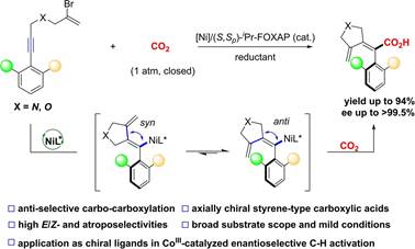 2. Chao Li,† X.-W. Chen,† L.-L. Liao,† Y.-Y. Gui*, J.-W. Yang, S. Zhang, J.-P. Yue, X. Zhou*, J.-H. Ye, Y. Lan, D.-G. Yu*, Nickel-Catalyzed Atroposelective Carbo-Carboxylation of Alkynes with CO2: En Route to Axially Chiral Carboxylic Acids. Angew. Chem. Int. Ed. 2025, 64, e202413305. († Equal contribution. Hot Paper.)