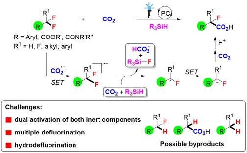 54. S.-S. Yan, S.-H. Liu, L. Chen, Z.-Y. Bo, K. Jing, T.-Y. Gao, B. Yu, Y. Lan,* S.-P. Luo, D.-G. Yu*, Visible-light photoredox-catalyzed selective carboxylation of C(sp3)−F bonds with CO2. Chem 2021, 7, 3099.