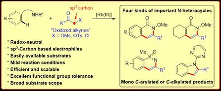 117. D.-G. Yu, F. de Azambuja, F. Glorius*, α-MsO/TsO/Cl Ketones as Oxidized Alkyne Equivalents: Redox-Neutral Rhodium(III)-Catalyzed C–H Activation for the Synthesis of N-Heterocycles. Angew. Chem. Int. Ed. 2014, 53, 2754. (Top 6 most accessed ACIE paper in Feb. 2014, Highlighted by Synfacts 2014, 10, 567.)