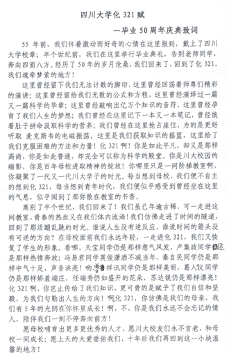 经历了50年的岁月沧桑,校友们回到了化321,那魂牵梦萦的地方。依然是熟悉的红墙,熟悉的化院!离别了半个世纪,昔日风华正茂的莘莘学子,如今虽已年逾古稀,回到母校,校友们都感慨万千,欣喜之情溢於言表。