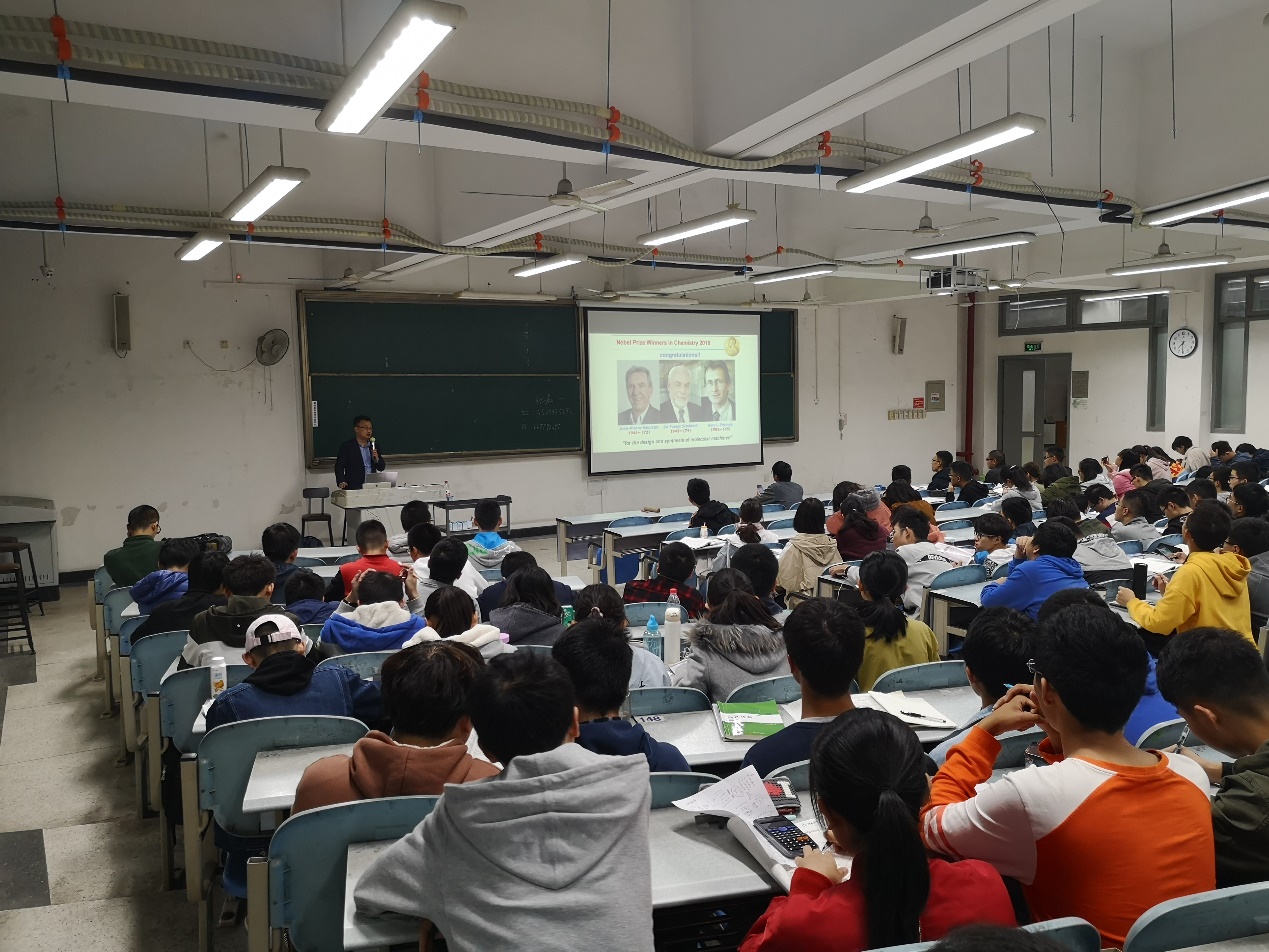 2018 级11月6日晚,在江安校区综合教学楼C座107室,杨成教授为77779193永利官网2018级新生带来了“创新思维与交流”系列讲座第七讲:超分子光化学简介。