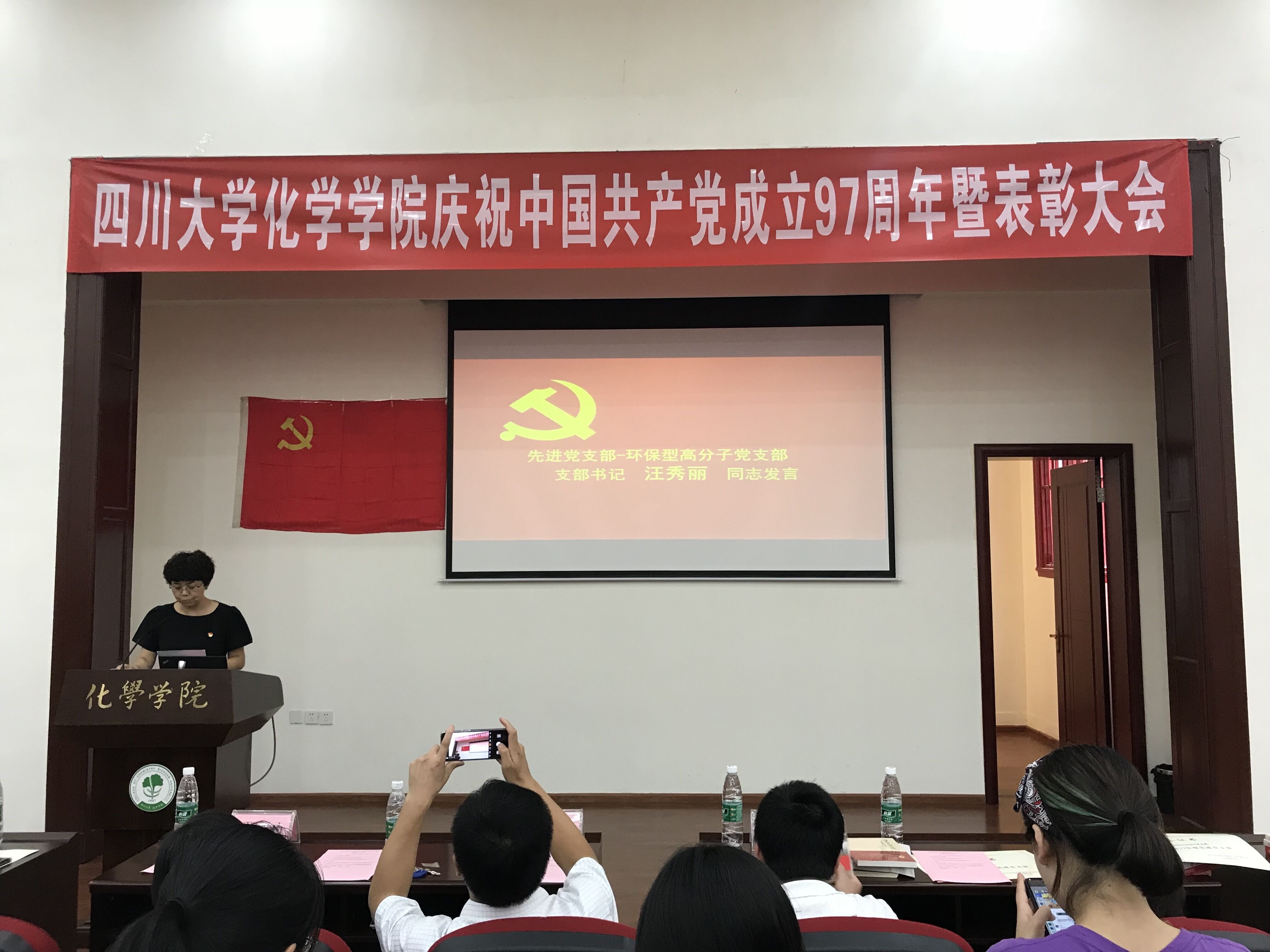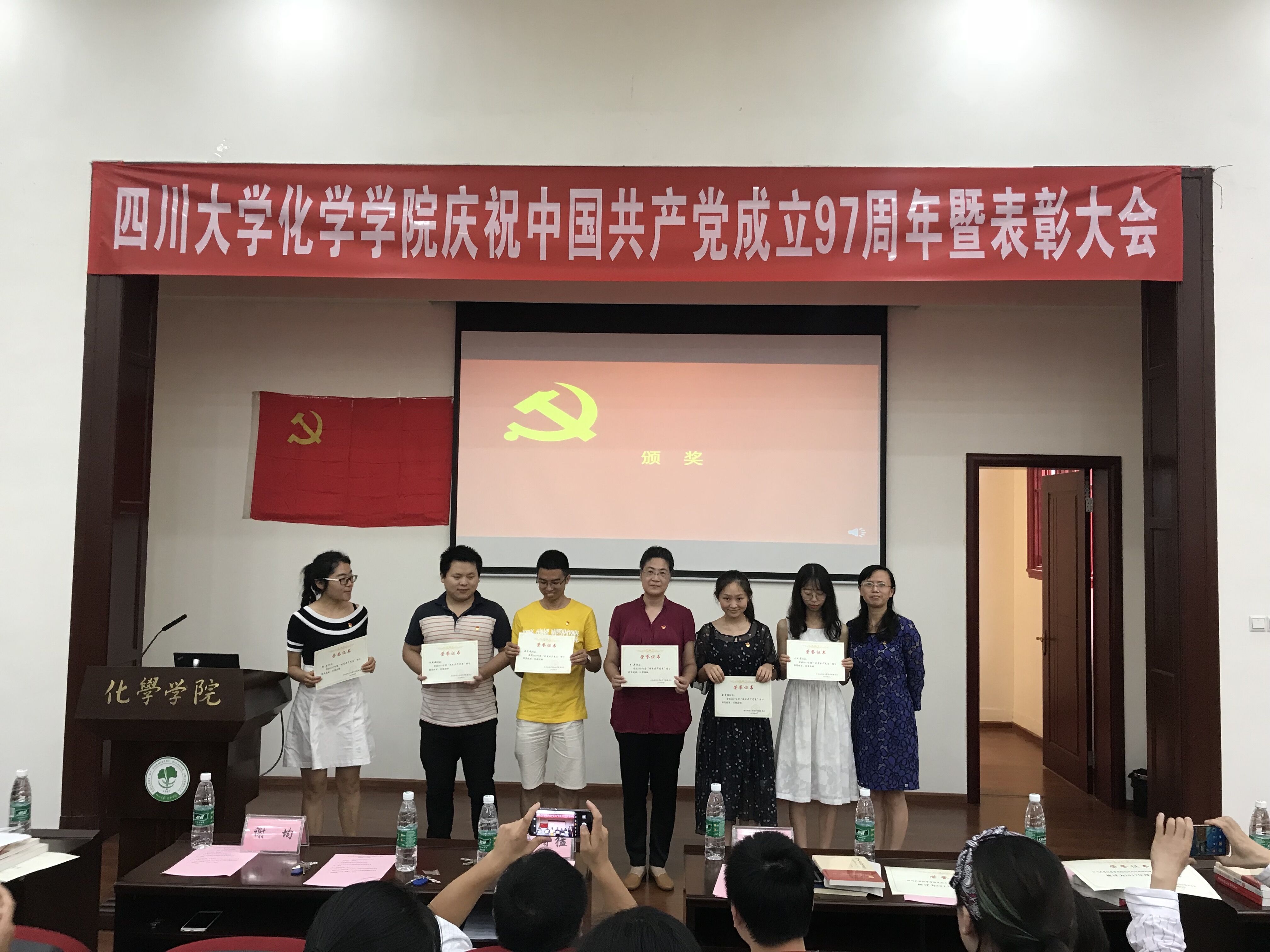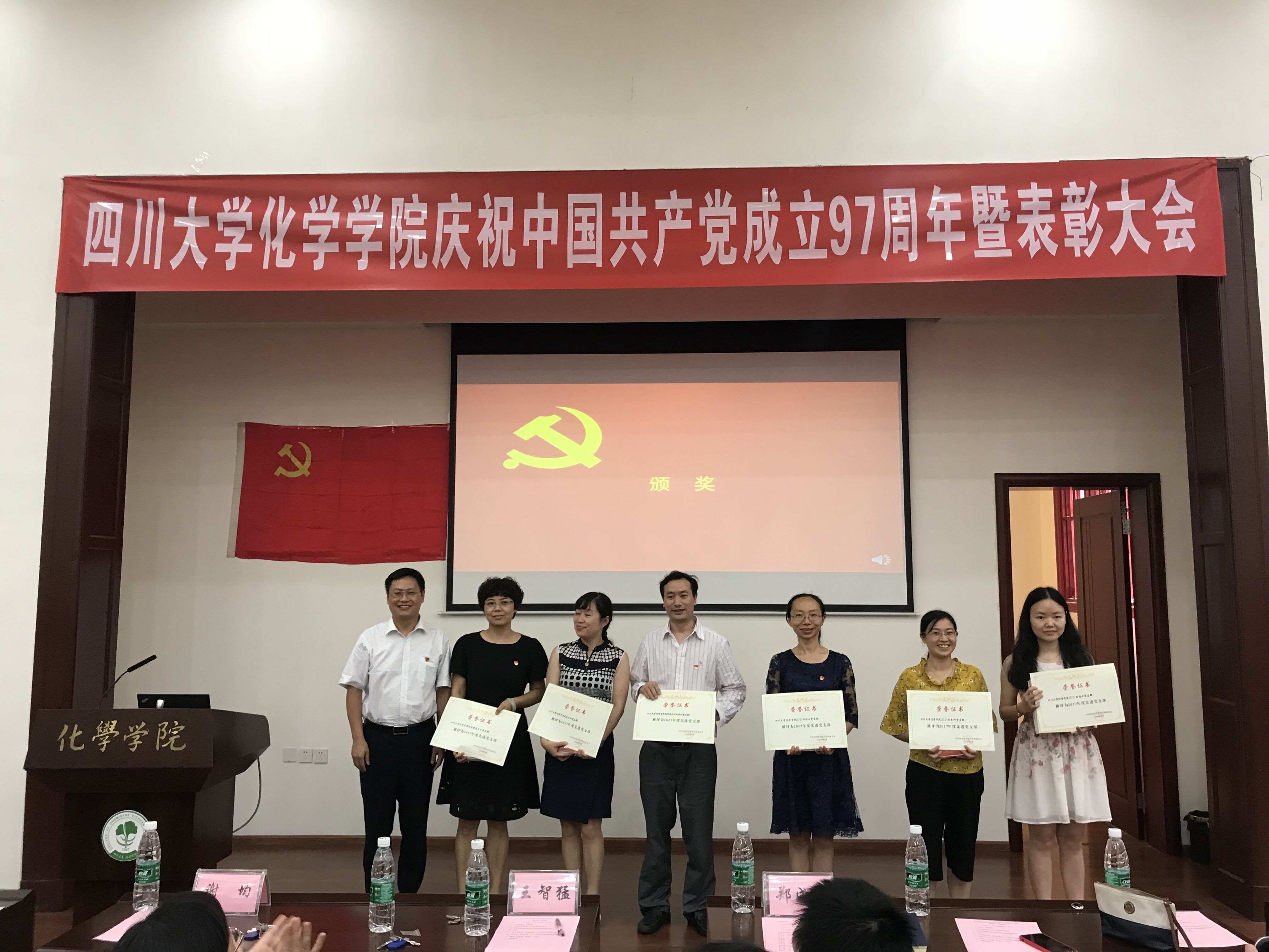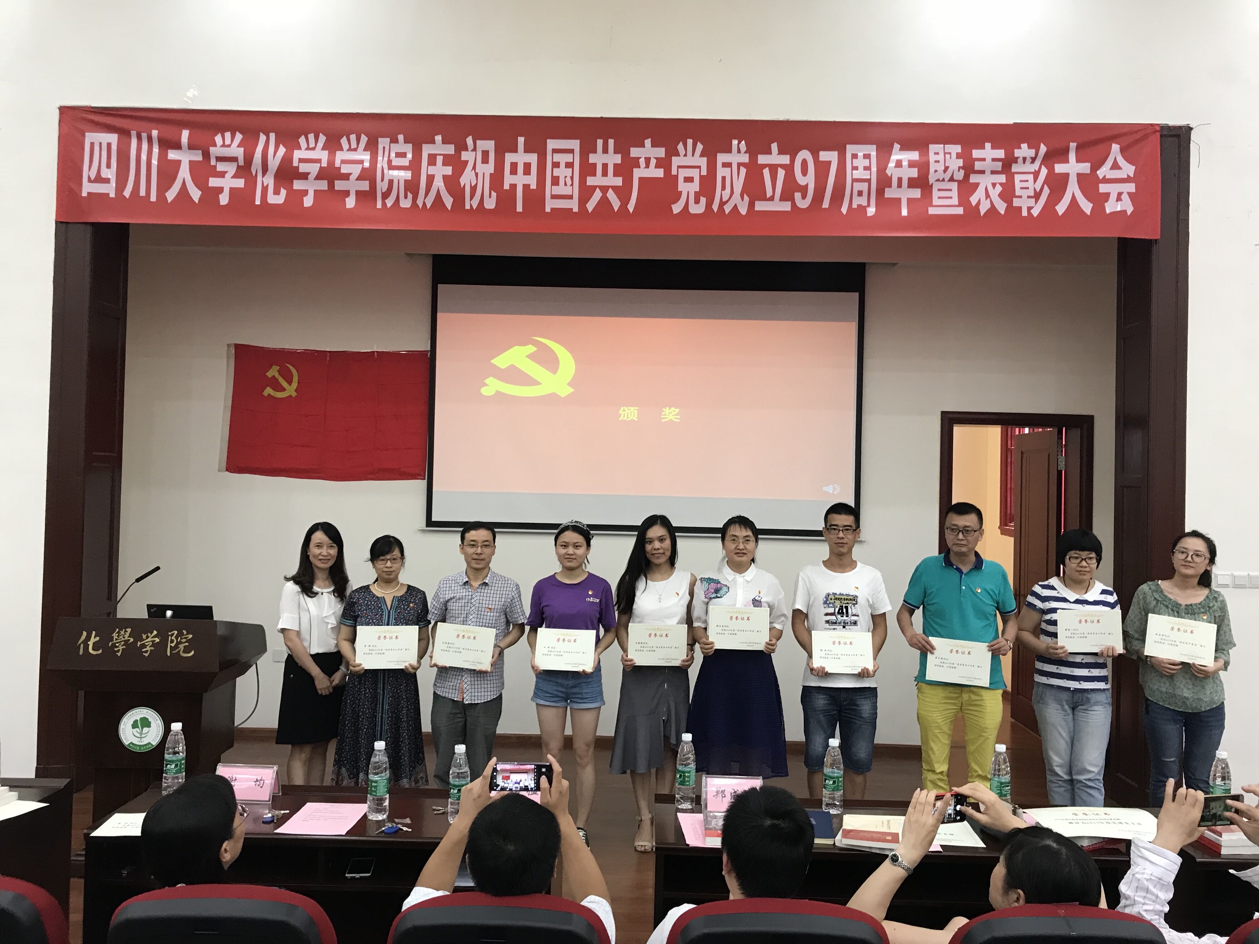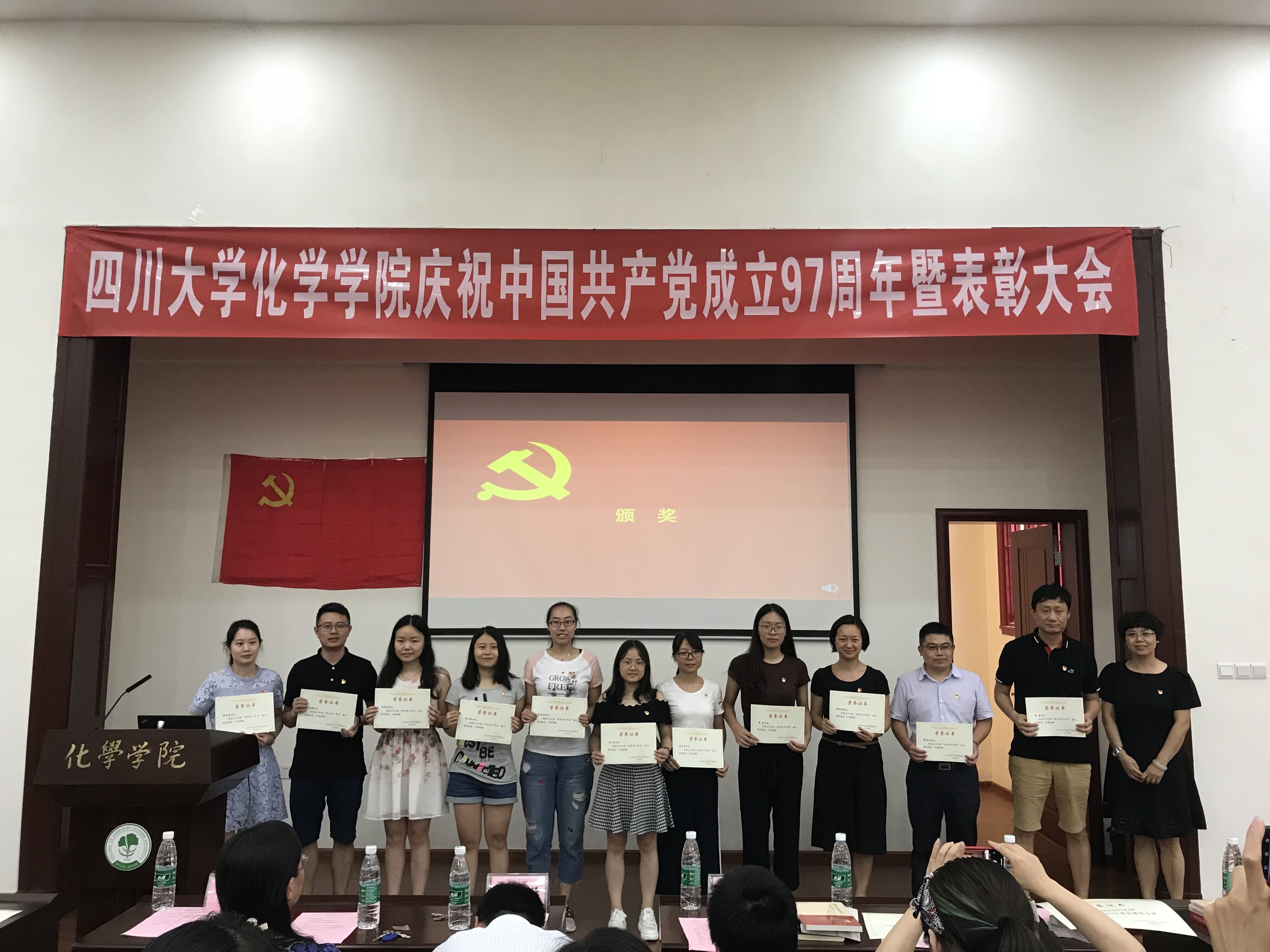 2018年6月29日下午,77779193永利官网庆祝中国共产党成立97周年暨表彰大会在化学馆321报告厅隆重举行。77779193永利官网党委书记王智猛同志、党委副书记谢均同志、副院长郑成斌同志、学院党委委员、党支部书记、优秀共产党员、优秀党务工作者及党员代表出席了大会。大会由谢均同志主持。