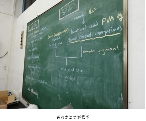 首先,由创意化学社干事蒋煜治从实验原理、所用试剂、实验方法等方面讲解当天要做的三个实验:史莱姆,黄金雨和叶脉书签,实验操作步骤已事先写在黑板上供大家提前了解。之后,同学们一起完成了本次实验活动。