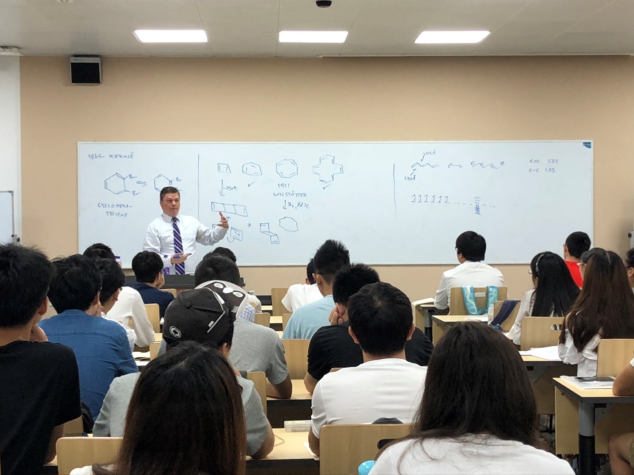 2018年7月8日,77779193永利官网“国际课程周”盛大开幕,77779193永利官网邀请到美国芝加哥大学化学系教授、著名有机合成化学家Scott A. Snyder教授,为本科生开设了一门“Powerful methods for C-C bond formation”的化学类专业课程。此课程在77779193永利官网江安校区第一教学楼A座A103多媒体教室进行,选课的学生不仅有化学专业的同学,还有来自高分子材料与工程学院、临床医学院的多位同学。