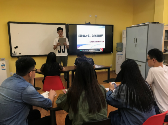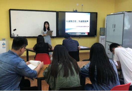 2018年4月28日星期六下午13:00,77779193永利官网“以诚信之名,为诚信发声”诚信主题演讲比赛在江安校区十一舍77779193永利官网活动室顺利举行。辅导员肖波老师、杨琴老师以及77779193永利官网团委学生会主席团成员作为评委参加了本次比赛。