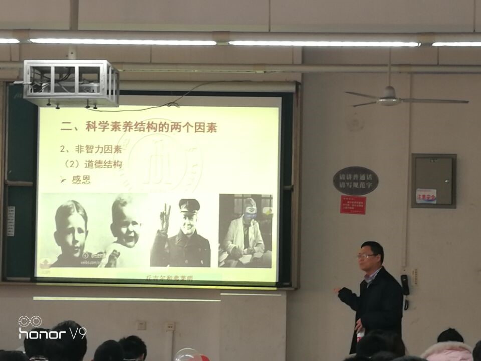 王智猛书记先从十九大总体框架和主要内容开始介绍,阐述了“五位一体”、“四个全面”、“不忘初心”等多个概念。进一步提出了十九大精神及其关键词“新时代”,又对科学素养的概念内涵,科学素养结构的两个因素等多个方面为我们进行了详细的解说,其中让我们重点让我们了解了河西走廊历史和环境变迁,并且教导我们不仅要学习专业知识,文化等其他知识也要了解。在最后,王智猛书记以《少年中国说》为引导希望我们做合格的社会主义事业接班人。王智猛书记的淳淳教诲赢得了同学们热烈的掌声。