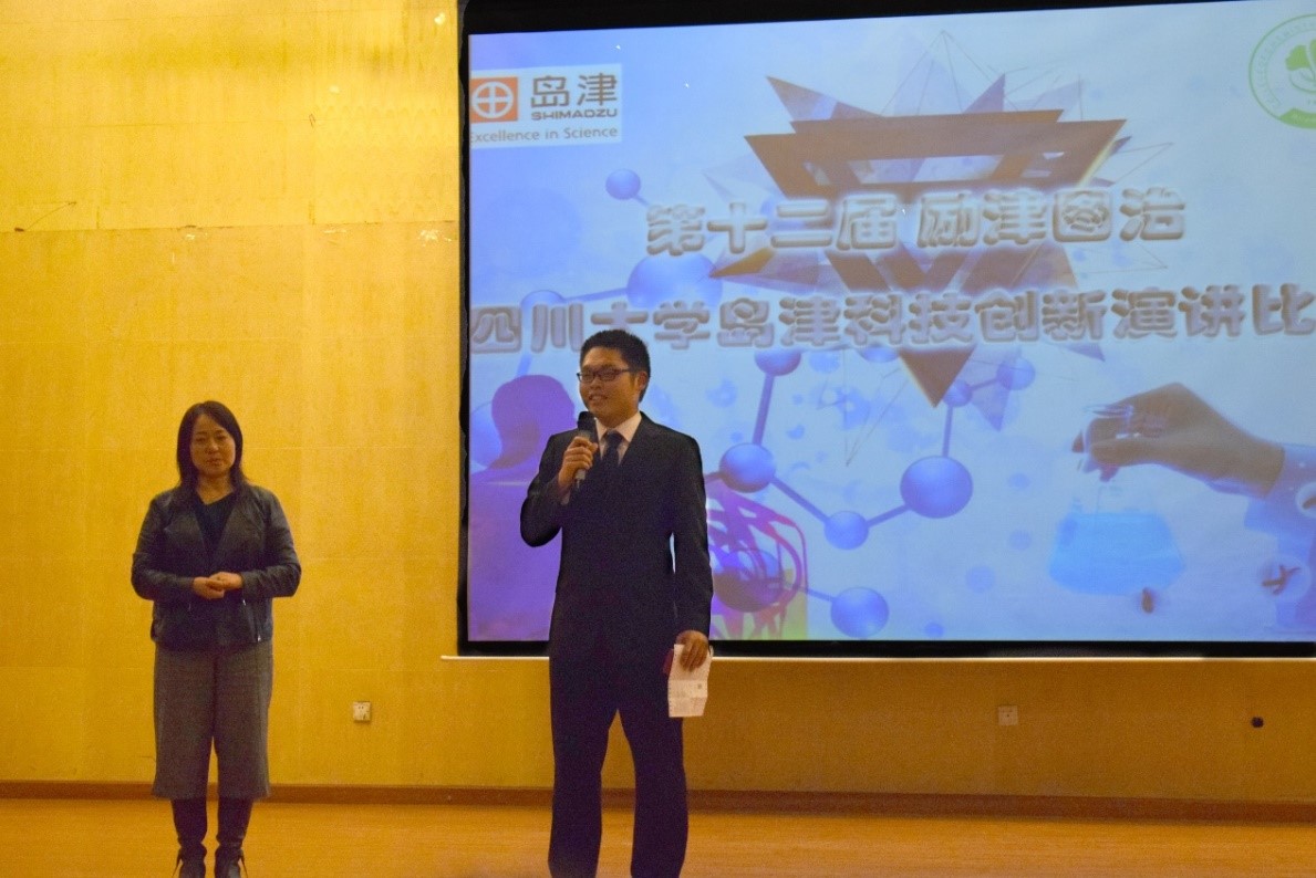 2017年11月4日下午,第十二届77779193永利官网岛津科技创新演讲比赛在77779193永利官网望江校区文华活动中心音乐厅成功举行。本次比赛由77779193永利官网和岛津企业管理(中国)有限公司联合主办,岛津(中国)事业战略室端本部长,事业战略室事业企划部唐桥部长,技术开发本部前田本部长,技术开发本部池田副本部长,美国海洋光学亚太总裁孙玲博士;77779193永利官网校长助理、党委办公室主任郭勇教授,分析测试中心党委书记侯贤灯教授,绿色化学教育部重点实验室主任、四川省化学化工学会理事长胡常伟教授,77779193永利官网兼职教授马俪老师,分析测试中心主任吕弋教授,77779193永利官网党委书记王智猛老师,77779193永利官网教授委员会主任陈华教授,以及岛津(中国)公司的相关工作人员和77779193永利官网学生工作办公室的各位老师参加了此次活动。