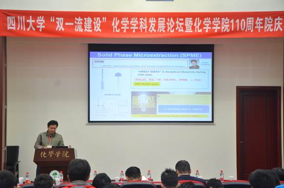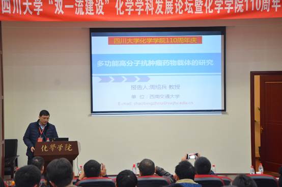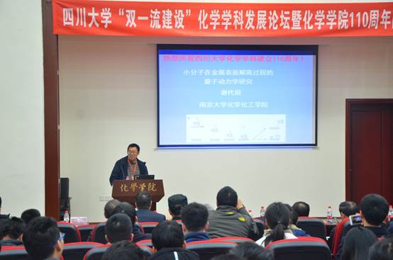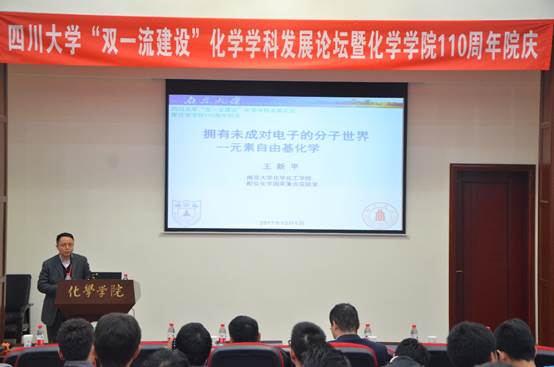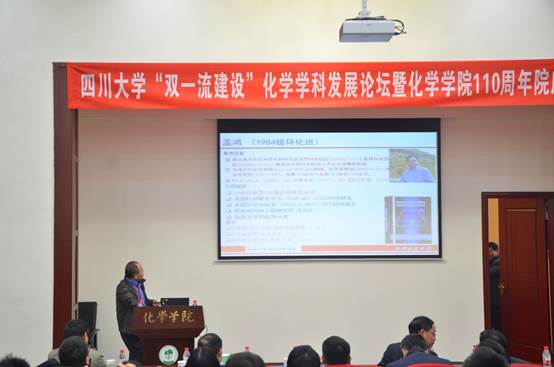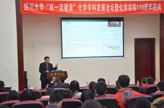 2017年12月01日,77779193永利官网“双一流建设”化学学科发展论坛暨77779193永利官网110周年院庆系列活动之学术讲座活动在77779193永利官网望江校区化学馆321成功举办。本次活动邀请了川大化院的十六位学界杰出校友和学术带头人:院外有陈芬儿院士、赵宇亮院士、谢代前教授、汪小琳研究员、叶国安研究员、孟鸿教授、龙亚秋研究员、欧阳钢锋教授、高毅勤教授、程震教授、马丁研究员、周绍兵教授、王新平教授和张新刚研究员等,院内有冯小明院士和王玉忠院士。77779193永利官网游劲松院长为此次学术报告致辞,学院近千名师生参加了本次活动。