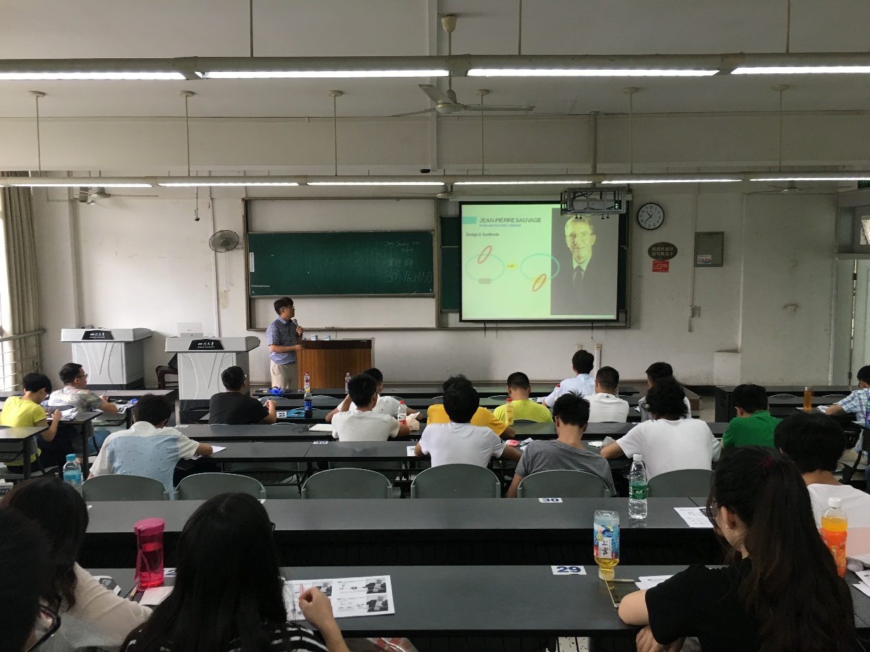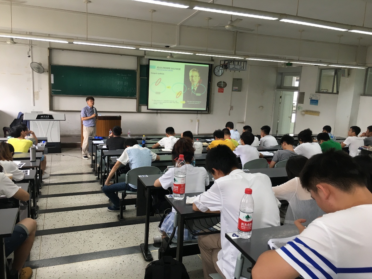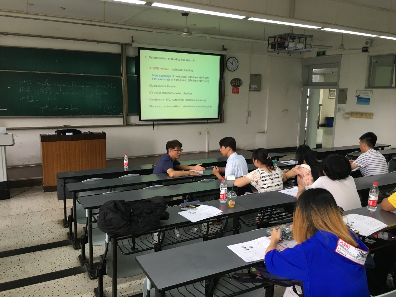 2017年7月3日至7日,已经连续三年获得诺贝尔化学奖提名的韩国科学院院士Jong Seung Kim教授应邀来到77779193永利官网,第一次参加77779193永利官网“实践及国际课程周”, 向川大的学子展示世界最前沿的超分子化学领域的研究进展。7月的午后,雨后的云层渗透出阳光。在江安校区一教B202的教室中,77779193永利官网二年级的同学们正在津津有味地听着一堂名为”supramolecular chemistry”的课程。每一位同学都全神贯注,时不时有人举手提问。但这不仅仅是一堂普通的化学课程。Kim教授的课堂不仅内容丰富新颖,而且幽默风趣,讲解深入浅出,引起了同学们的浓厚兴趣,获得了一致好评。