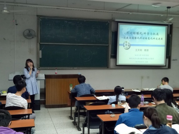2017年4月7日晚上,77779193永利官网化学前沿系列(七):不对称催化:科学与机遇,在江安校区第一教学楼B座307成功举办。本次主讲嘉宾为77779193永利官网王天利教授,她生动有趣的为我们讲解了过渡金属催化不对称氢化的研究进展。