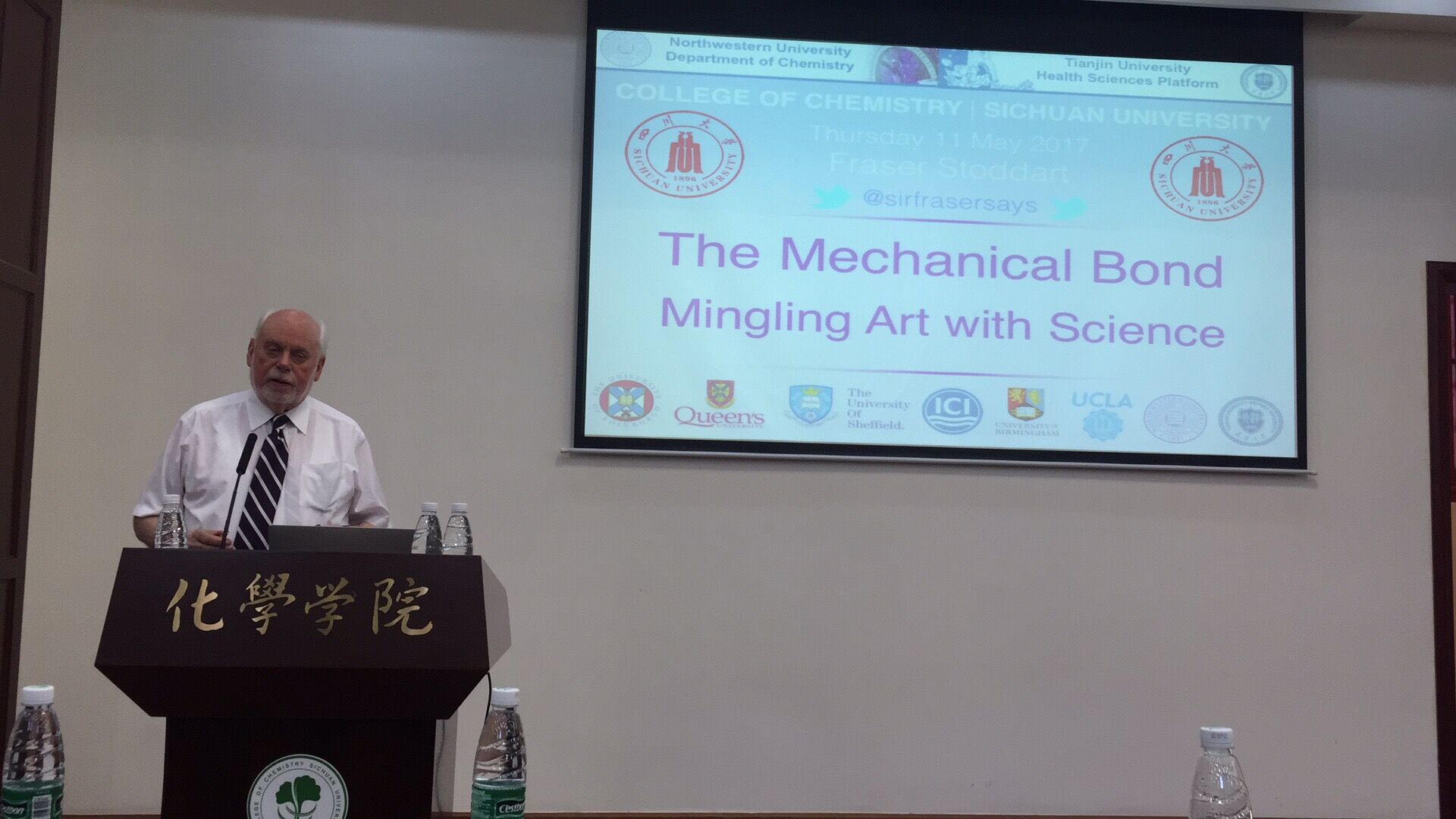2017年5月11日,2016年诺贝尔化学奖得主、西北大学化学系教授J. Fraser Stoddart爵士访问77779193永利官网,与拔尖班本科生进行面对面亲切交流,并为全院师生带来一场题为“The Mechanical Bond Mingling Art with Science ”的学术报告。