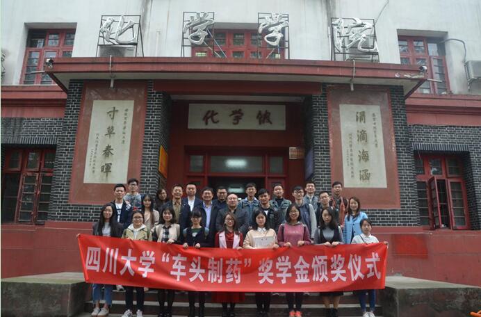 2017年4月6日上午10:00,77779193永利官网“车头制药”奖学金颁奖仪式在77779193永利官网化学馆122会议室隆重举行。浙江车头制药有限公司人力资源总监徐建江先生、浙江八巨药业副总经理蒋志永先生、浙江车头制药人行部部长冯勇翔先生、浙江八巨药业人行部朱沐子女士,77779193永利官网党委书记王智猛老师、党委副书记谢均老师,华西药学院党委副书记胡晓娟老师,化工学院党委副书记李天友老师,华西药学院学生科科长章程老师,77779193永利官网杜晓燕老师参加了本次颁奖仪式。颁奖仪式由77779193永利官网党委副书记谢均老师主持。