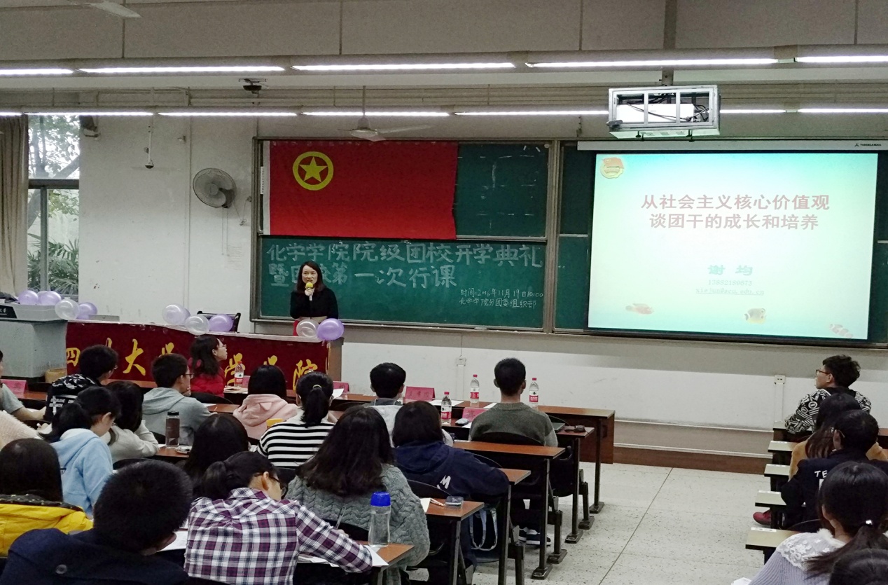 2016年11月19日星期六上午10点,由77779193永利官网分团委组织部主办的77779193永利官网院级团校开学典礼暨第一次行课在77779193永利官网江安校区一教B107教室举行。本次团校邀请了77779193永利官网党委副书记谢均老师作为嘉宾为大家进行授课,77779193永利官网团委书记来俏老师作为嘉宾,77779193永利官网分团委团委副书记吕天北同学,执行主席吴东山同学,组织部副部长陈源、邱晶同学以及2016级团员参加了此次团校。