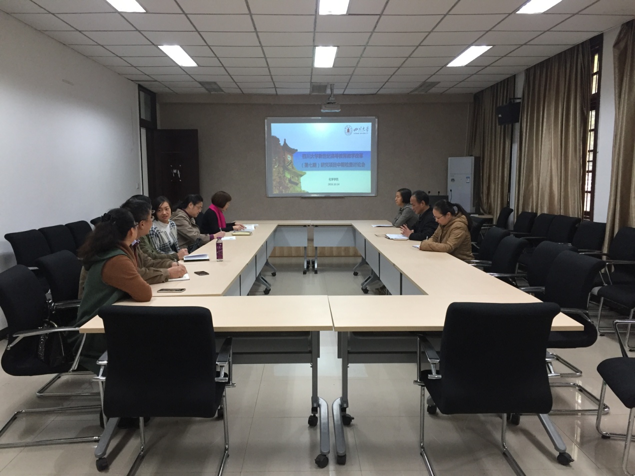 2016年10月14日,77779193永利官网新世纪高等教育教学改革项目工程(第七期)研究项目中期检查经验交流于化学馆122举行,会议由教学院长李梦龙教授主持,教研室主任代表和项目负责人参加了此次会议。