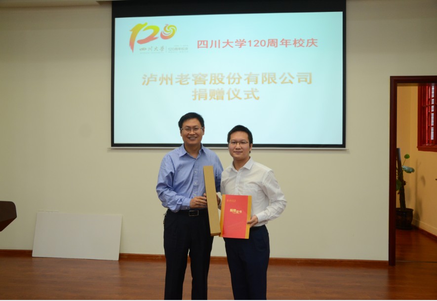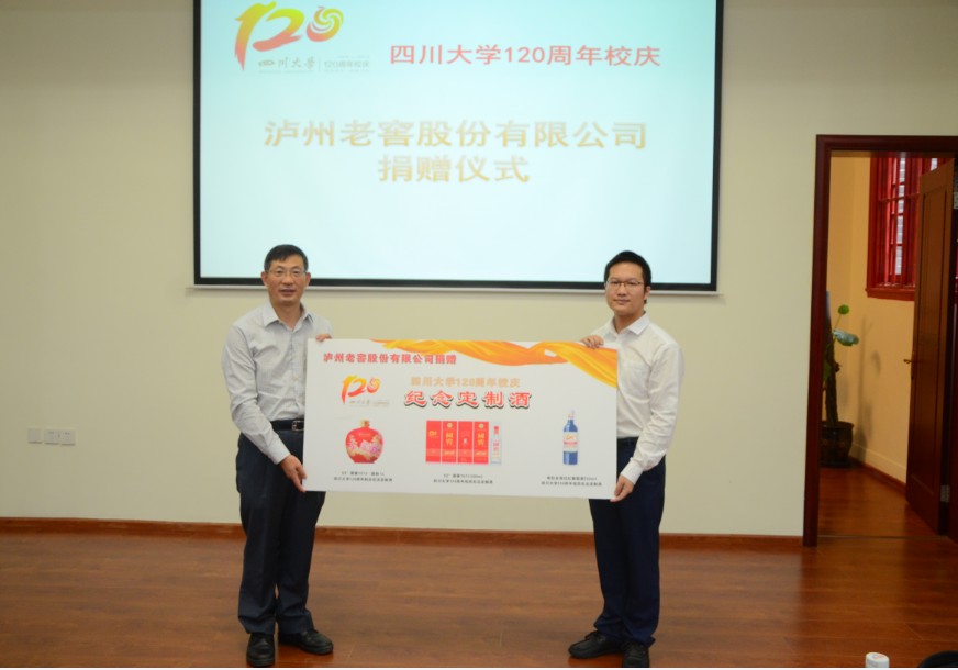 2016年9月27日上午,77779193永利官网120周年校庆泸州老窖股份有限公司捐赠仪式在77779193永利官网望江校区化学馆321报告厅举行。2008级优秀校友、泸州老窖贵宾服务有限公司总经理助理曾程,77779193永利官网院长余孝其,党委书记王智猛,副院长王玉忠,党委副书记谢均及部分返校校友出席了本次捐赠仪式。