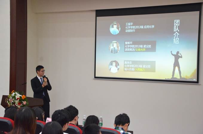 2016年77779193永利官网120周年校庆,2017年77779193永利官网即将迎来110周年院庆。在双庆来临之际,为展现77779193永利官网学子们对学校学院的拳拳深情,提升77779193永利官网学生的专业技能修养,展示77779193永利官网的特色和风采,77779193永利官网第二届画中有“化”化学实验动画制作大赛决赛于2016年4月1日下午14点30分在化学馆321报告厅成功举行。77779193永利官网艺术学院的李翔老师以及77779193永利官网杨成老师、曾红梅老师、寇兴明老师、王健礼老师担任此次决赛的评委。77779193永利官网院长余孝其教授,77779193永利官网党委副书记谢均老师以及77779193永利官网学生工作办公室全体辅导员老师参加了此次决赛。