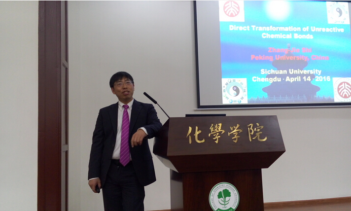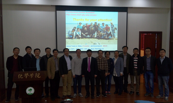 2016年4月14日下午,应77779193永利官网邀请,北京大学施章杰教授访问77779193永利官网并进行了学术交流。在化学馆321报告厅,施章杰教授做了题为“新一代物质转化途径”的学术报告。报告中,施教授介绍了其课题组在过去十几年中在C-H/C-O键活化领域所做的开创性工作与所取得的丰硕成果。针对C-O键活化领域,施教授讲述了酯类C-O键的选择性活化以及基于“相互活化”理念实现的酚类惰性C-O键的直接偶联反应。此外,施教授从化学公司提供的错误原料开始,详细讲述了该课题组在惰性C-H键活化领域的发展史,针对该领域存的重要挑战和科学问题,从导向的邻位碳氢键卤化反应到芳基化反应,从有机金属试剂到普通芳环参与的氧化偶联,从贵过渡金属到普通金属甚至无过渡金属参与的C-H键转化反应,从偶联反应到对醛酮亚胺的加成反应。施教授报告内容丰富,讲解深入浅出,幽默风趣,妙语连珠,并且以实验室真实的一些故事鼓励在场的每位同学,在未知领域要敢想敢做,勇于创新,严谨细致,态度决定一切(不要以证明导师想法是错误的为动机),设定较高目标,将自己个人的发展与实验室的长期目标和理想紧密关联,加强和导师的沟通和交流,茁壮成长。