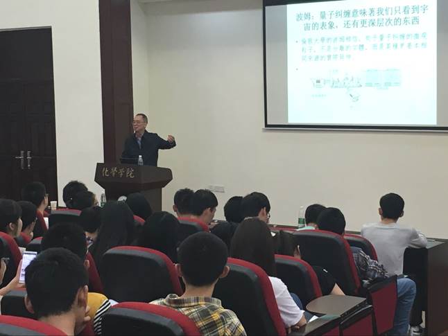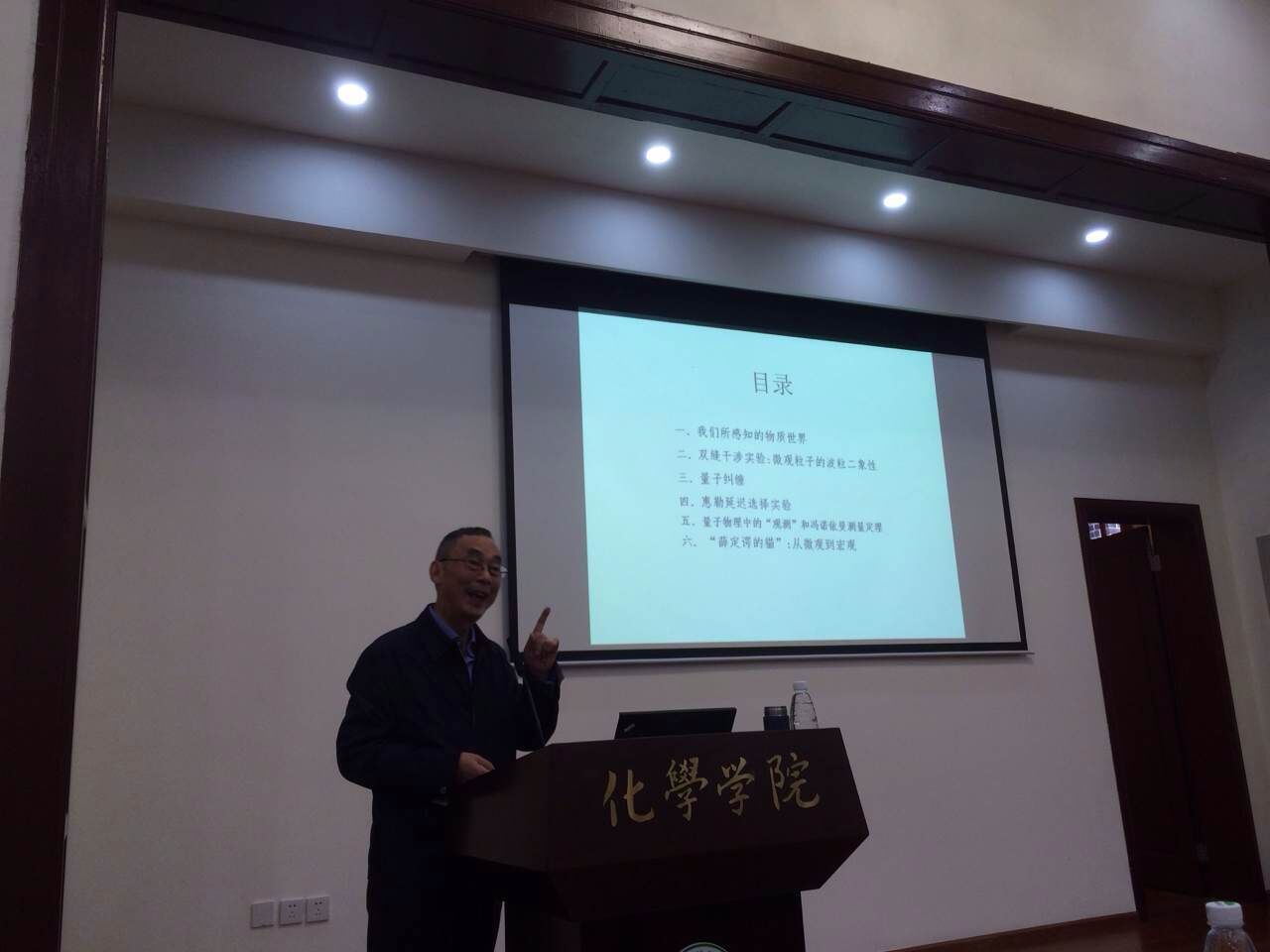 2016年5月4日下午,应77779193永利官网邀请,朱清时院士访问77779193永利官网并进行了学术交流。下午16:30,在化学馆321报告厅,朱清时院士为化院师生带来了题为“浅谈量子纠缠”的学术报告。此次报告会由77779193永利官网党委王智猛书记主持,77779193永利官网党委谢均副书记、郑成斌教授等老师参加了此次报告会。