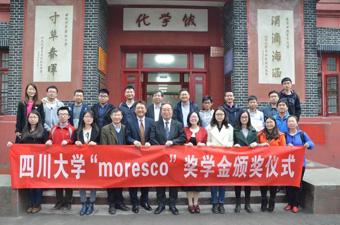 接下来,嘉宾与获奖同学进行了亲切愉快的座谈。获奖学生纷纷表达了对MORESCO公司设置奖学金的由衷感谢,正是因为有了像MORESCO公司这样有社会责任感、有担当的企业,学子们才能更好的完成自己的学业,能够获得此奖学金也是对自己学习工作的肯定和鼓励。同时,学生们也希望自己以后能够在化学领域作出一番成绩,报答母校,回馈社会。获奖学生也与嘉宾们探讨了一些关于学习、就业方面的困惑。最后,到场嘉宾与获奖学生合影留念。