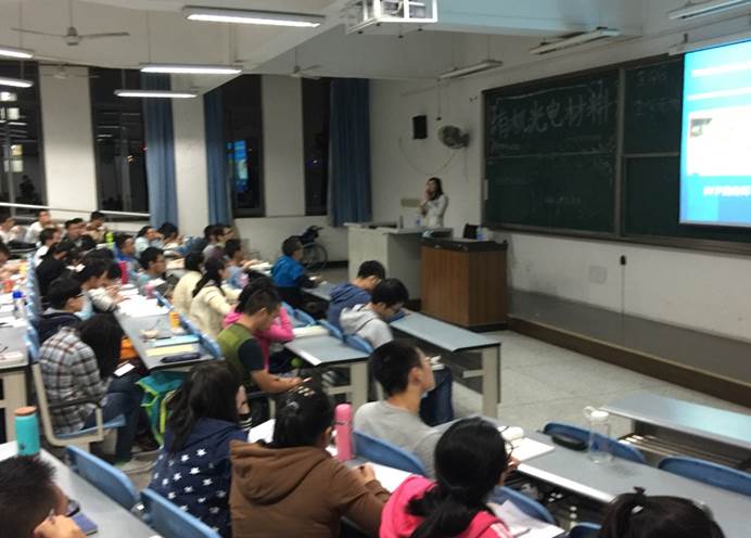 2015年10月27日晚上7:20,卢志云教授在江安校区综合楼C座304为77779193永利官网2015级同学带来“新型有机光电材料”的精彩讲座。
