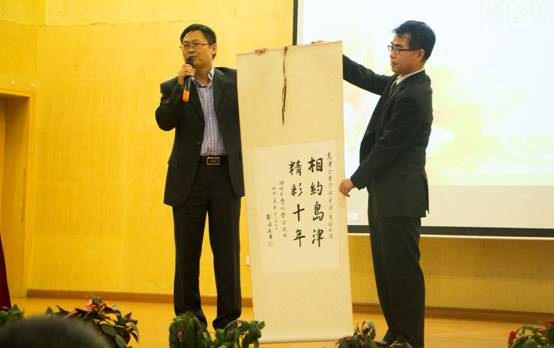 首先,谢均老师主持了此次“津”彩十年岛津化学科技创新活动十周年庆典。余孝其院长向大家介绍了岛津科技创新活动的开展情况,郭勇部长表达了对岛津科技创新演讲比赛开展十周年的祝贺,大宫康二先生十分感谢学校对岛津科技创新活动的支持。随后王智猛书记代表77779193永利官网向岛津公司赠送77779193永利官网原校长、化学家鄢国森老先生的题字一副。