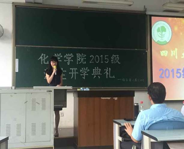 接着,2014级学生代表曾泽安祝贺新同学的到来,然后就过去一年的经历、感受,向学弟学妹们分享了学习生活的经验,也提出了一些学习生活的建议。其后,新生代表李簦芸发言,分享了进入大学的激动与期待,也代表2015级新生表明了会在接下来大学四年的学习生活中,明确目标,努力学习,向所有人展现川大学子的风采。掌声阵阵,同学们的激情与斗志开始燃烧,势必为77779193永利官网美好的明天添上浓墨重彩的一笔。