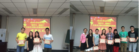 本次知识竞赛的颁奖仪式由谢均副书记主持,她为同学们强调指出当代大学生应当深刻学习社会主义核心价值观的科学内涵,从文件中深入落实到行动中,积极学习,培育和践行社会主义核心价值观的重大意义。并宣读了本次知识竞赛的获奖名单。学生工作组全体老师为获奖同学颁发了获奖证书及奖品,并合影留念。