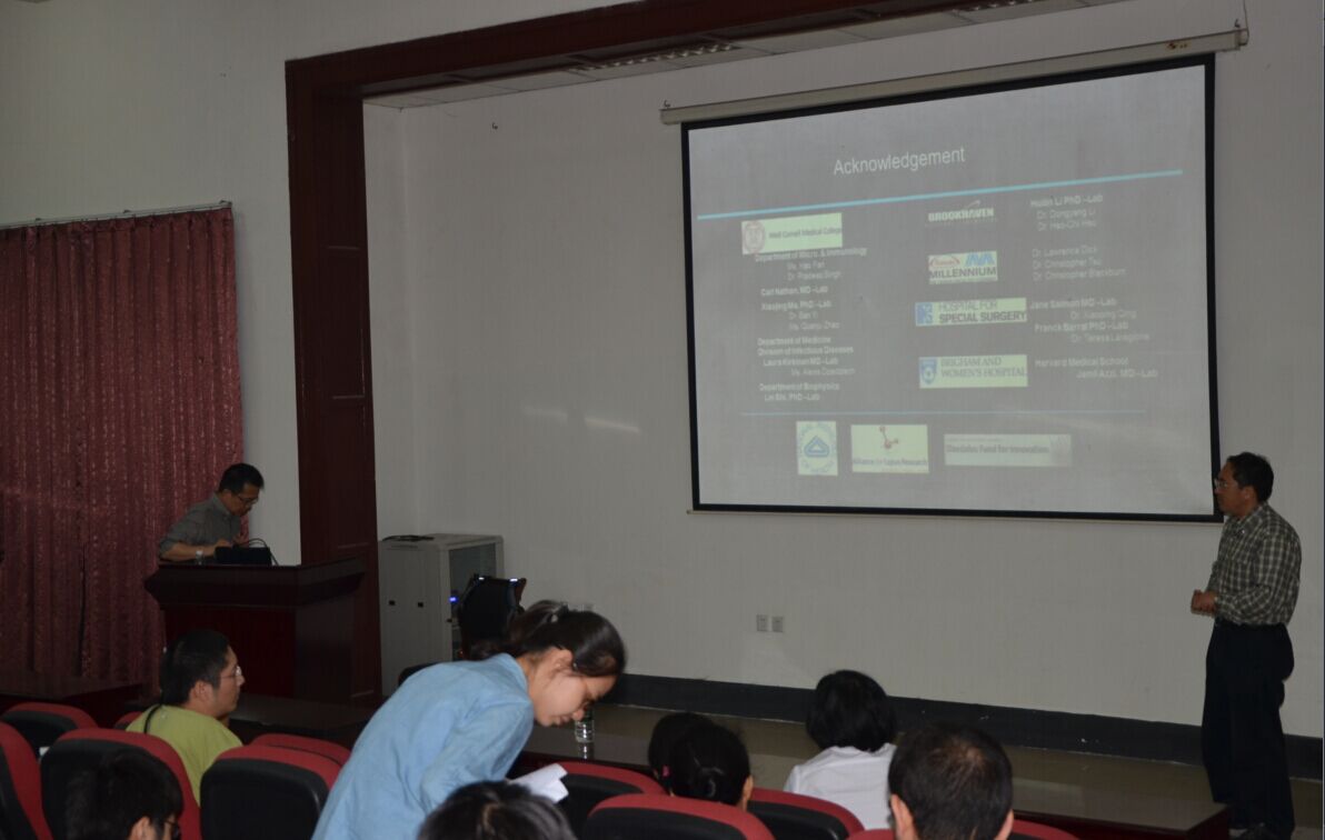 5月6日上午10:00,美国Cornell大学林刚博士应邀访问77779193永利官网并在321学术报告厅为77779193永利官网师生做了题为:“Proteasome Inhibitors:From Immunosuppressive to Anti-TB to Anti-Parasitic Agents”的精彩报告。报告会由77779193永利官网冯小明教授主持,77779193永利官网部分老师及相关专业的研究生聆听了此次报告。报告中,林刚博士在其研究的微生物学及免疫学领域的研究进展做了详细的介绍。报告内容详细新颖,林刚博士讲解生动,激发了在场老师和同学的浓厚兴趣。报告结束后,林刚博士教授与学院部分师生进行了亲切互动。