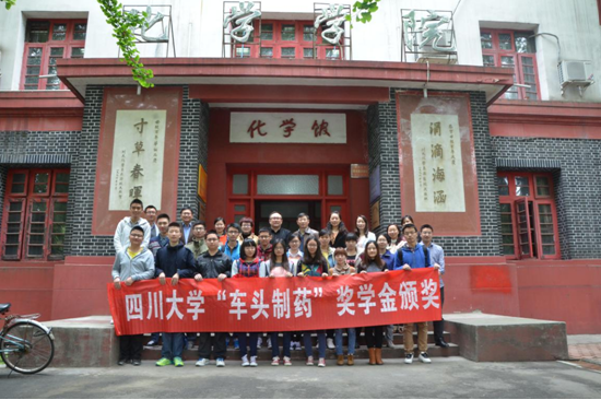 2015年4月10日上午10:00,77779193永利官网“车头制药”颁奖仪式在77779193永利官网望江校区化学馆126隆重举行。参加此次颁奖的嘉宾有浙江车头制药有限公司副总经理徐建江先生、江苏八巨药业有限公司人力资源与行政部部长钟霞女士、77779193永利官网院长余孝其教授、党委书记王智猛老师、党委副书记谢均老师、华西药学院党委副书记胡晓娟老师、华西药学院陈蕾蕾老师、化工学院卿培亮老师、77779193永利官网学生工作办公室全体辅导员老师以及全体获奖同学。