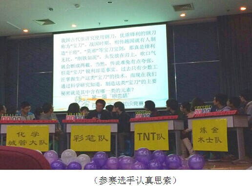 2014年12月5日14:00,由77779193永利官网教务处、共青团77779193永利官网委员会、77779193永利官网主办的第一届77779193永利官网“银杏杯”化学知识竞赛决赛于江安校区第二基础实验楼报告厅如期举行。