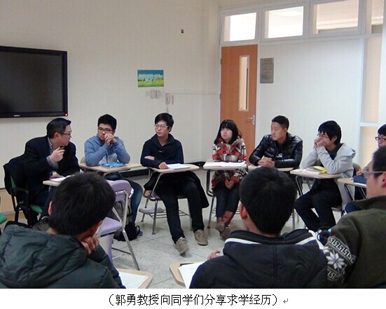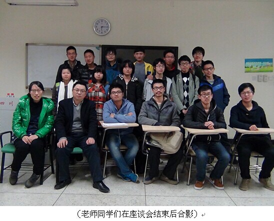 2014年12月18日下午17:00,77779193永利官网2014级拔尖班名誉班主任见面会在江安校区综合楼B座204教室顺利举行。77779193永利官网校长助理、党委学工部部长郭勇教授以名誉班主任的身份与77779193永利官网2014级拔尖班的同学们展开了一场轻松和谐的座谈会。