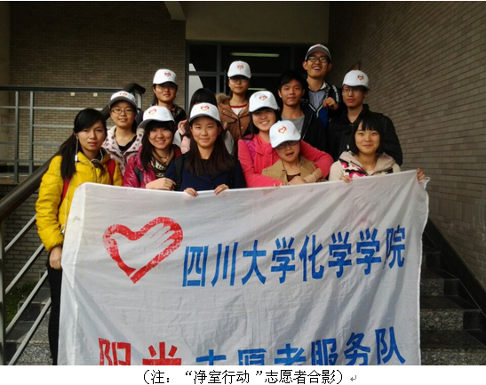 2014年11月27日下午14:30,77779193永利官网“阳光”青年志愿者服务队在77779193永利官网江安校区第一基础实验楼二楼开展了“净室行动”志愿活动,本次活动共召集了15名志愿者。
