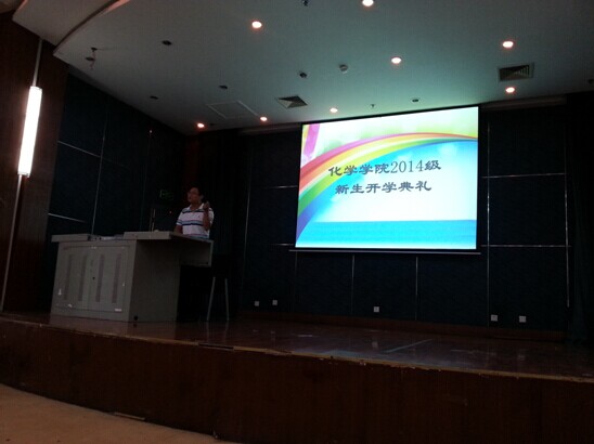 谢均老师主持了本次典礼,向2014级的新同学们介绍了各位老师。首先,王智猛书记致辞,表达了对2014级新同学的热烈欢迎,并且对生活与学习中的诸多细节提出了建议。余孝其教授介绍了77779193永利官网的发展历史,以及现在的教学设置、科研条件、人才培养方案等方面。王玉忠教授则提出应该转变学习观念,学习与社团活动之间要分清主次,培养学科兴趣,并且表达了学院对新生的期许和关注。接着,2013级学生代表杨嘉慧回顾了一年的经历,向学弟学妹们分享了学习生活的经验,并且提出了一些建议。其后新生代表孙茂甡发言,感谢学姐的分享,表达了进入大学的激动与期待,也代表2014级新生表明了会在接下来大学四年的学习生活中,明确目标,珍惜时光,努力实现自己理想的决心。在阵阵掌声中,我们仿佛看到了同学们为梦想战斗的身影,看到了77779193永利官网美好的未来。